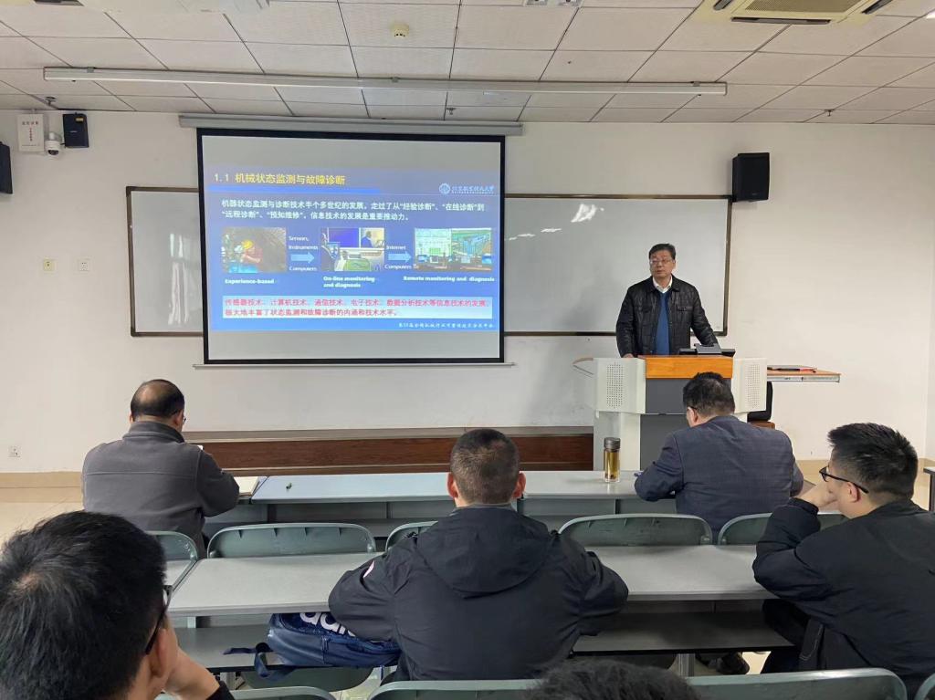 林京教授结合自己和所在团队的研究实践和研究成果,系统介绍了机器学习与信息学融合的发展历程、信息融合与故障诊断和智能运维的发展前景。并与参会师生就故障诊断、数字孪生、智能运维和飞机健康管理等核心技术问题进行了探讨和指导。讲座开始前,林教授一行先行参观了发动机中心、复合材料实验室等部门,并与相关负责人进行了深入交流。