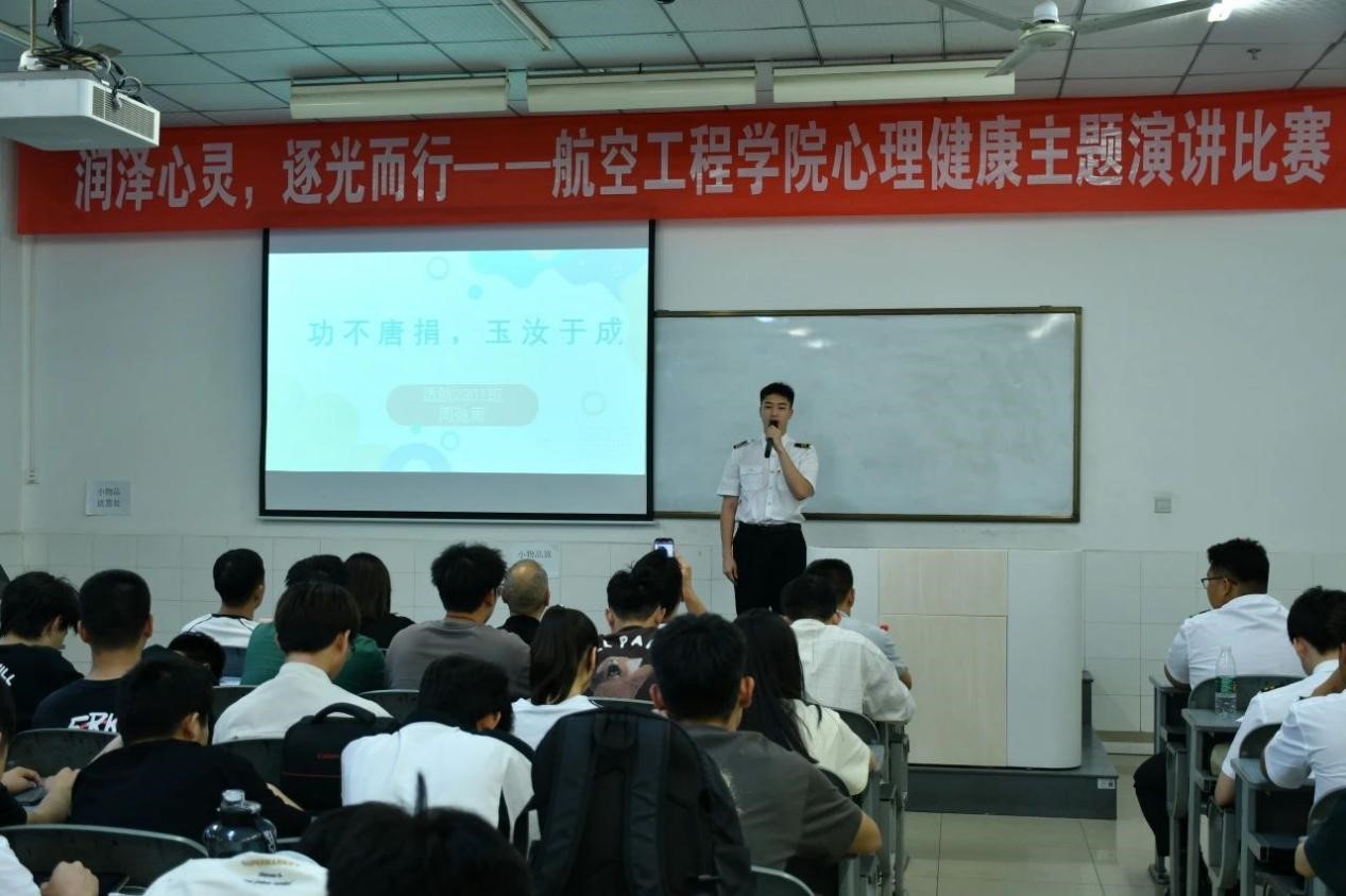 本次活动是“5·25”心理健康月系列活动之一,经过初赛复赛,最终7位选手进入决赛。选手们围绕心理健康的主题,针对大学生面对的不同压力进行了深入的分析并提出了相对有效的解决方案。经过激烈角逐,最后由来自航工2202班的周瑛珏以总分456分,平均分约91分的优异成绩斩获一等奖,李凯胜、张罡荣获二等奖,苟希元、杜哲远、周弛雨、陈政杰荣获三等奖。