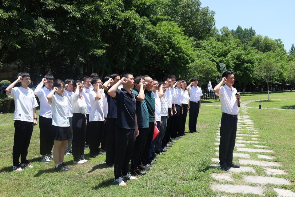 首先,朱彬带领师生党员重温入党誓词。庄严的宣誓声是对初心使命的深刻的回顾,也是对未来征程的郑重承诺。随后,吴斌开展七一微党课,讲述了“坚持真理、坚守理想,践行初心、担当使命,不怕牺牲、英勇斗争,对党忠诚、不负人民”为内涵的伟大建党精神。