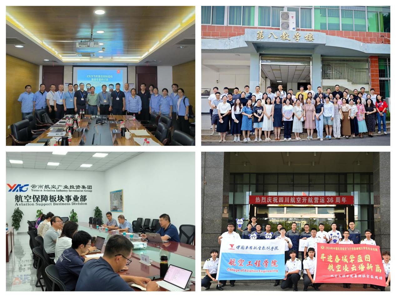 一是教学科研:2024年7月25-28日,左都全老师受CCCM-5中国国际复合材料科技大会邀请,带领先进连接与智能运维团队参会,并作现场报告。会上,左都全老师受聘于中国复合材料学会航空复合材料及应用专业委员会委员。7月24-26日,杨文锋老师参加了中国商飞举行的C929复合材料结构维修专题研讨会。7月27-29日,姚星宇,侯甲栋,陈淑仙3位老师参加教育部《航空发动机原理》课程虚拟教研室、教育部飞行器动力工程专业虚拟教研室课程交流与教师培训会议。7月28-31日,黄刚劲老师参加第43届中国控制会议,并在会议上进行了论文的宣讲。暑假期间,动力工程系侯宽新,邱超,左渝钰,李超东等老师完成147培训M5《涡轮发动机》课程教学工作,飞机工程系秦文峰,曾昭炜,侯冰雪,董璐,周蜜,肖鹏等老师开展147培训教学工作。