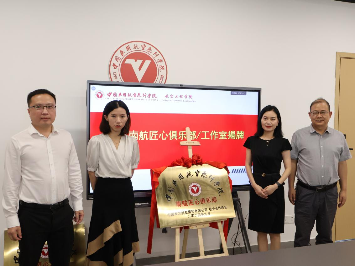 在热烈的掌声中,校企双方领导共同为“南航匠心校企俱乐部/工作室”揭牌。随后校企双方就项目建设细节展开讨论。“南航匠心校企俱乐部/工作室”的揭牌成立为学院与南航在产教融合、资源整合、交流合作提供了更为坚实的平台。未来,学院将协同南航优势资源,共同为学院学生成长成才保驾护航。