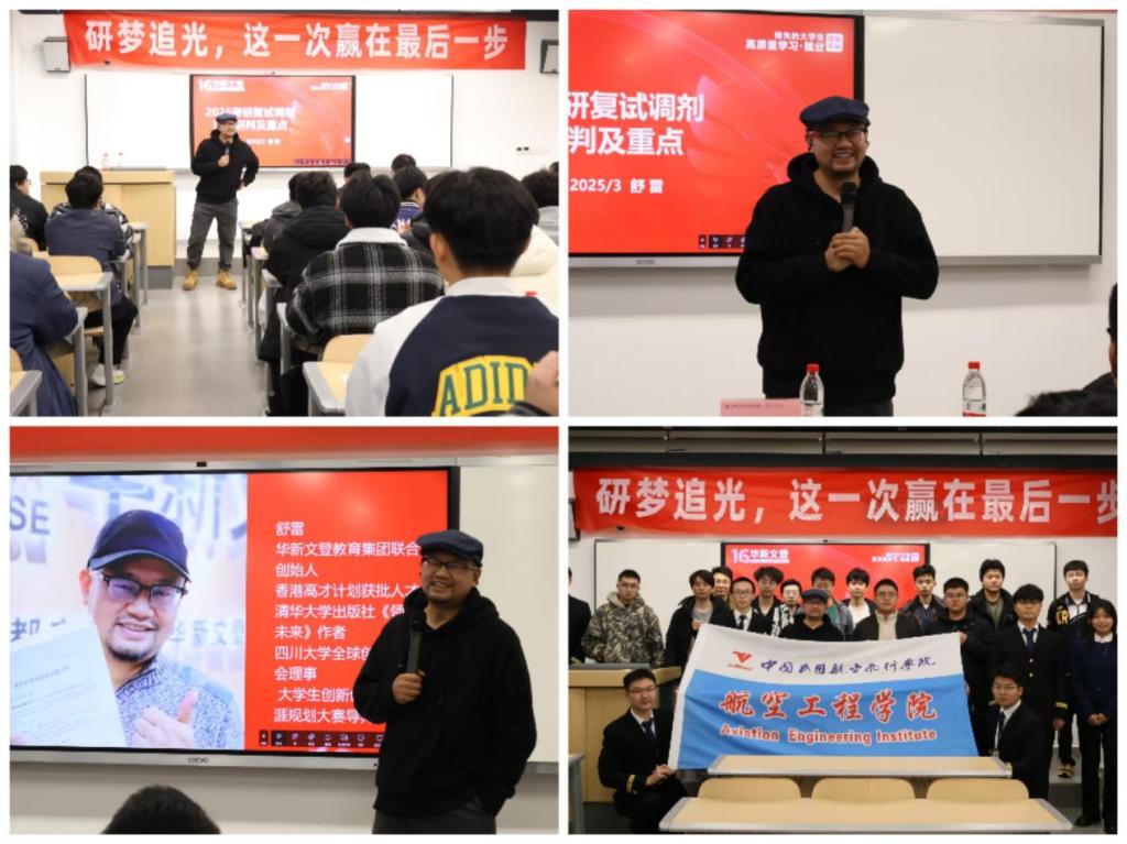 讲座中,舒雷通过分析近五年全国研招数据,解读2025年复试考核体系改革方向,着重强调“学术潜力与专业适配性”的重要性。针对航空工程学科特点,他进一步阐述科研素养展示、学科前沿认知、跨学科思维融合等备考要点,助力同学们明确备考方向。在互动环节,同学们围绕复试各类问题踊跃提问,舒雷结合北航、南航等院校最新招录案例,从学术伦理、表述策略、佐证材料准备等维度,为复试同学提供针对性建议 。