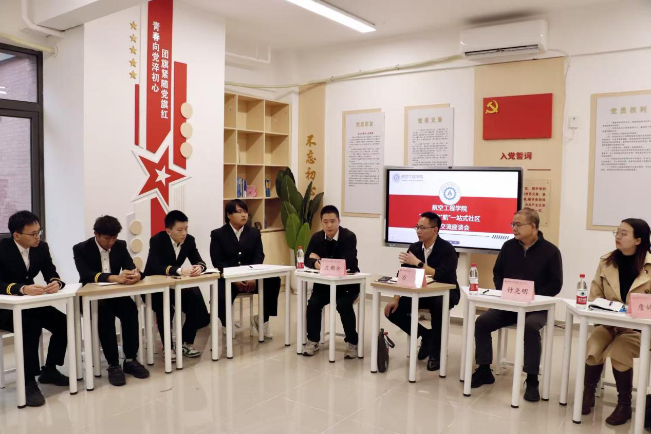 本网讯:詹婷雯 报道:为切实服务学生成长,解决学生学业、职业规划中的疑惑。10月30日,学校机务处处长万军一行深入william威廉英国在“程”风启“航”一站式社区与学生开展面对面交流座谈。学院院长付尧明、飞机工程系主任左都全、团委副书记詹婷雯参与了此次交流活动。